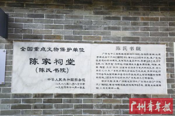 1988年,陈家祠堂被列为全国文物保护单位,1994年立成的碑文记载了陈家祠堂这段历史。