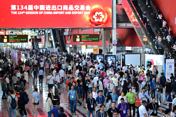 日期:[2023-11-06] 版次:[37] 版名:[数字故事]10月15日,第134届中国进出口商品交易会(广交会)在广州开幕,这一届广交会的规模再创新高,展览总面积扩至155万平方米,展位总数7.4万个,来自全球215个国家和地区的不同肤色、不同语言的参展商、采购商共同参加这场以外贸盛会。