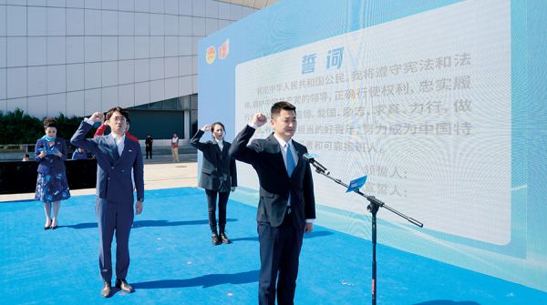 团十九大代表、广汽集团团委书记贾文召等4位领誓人的带领18岁青年进行成人宣誓