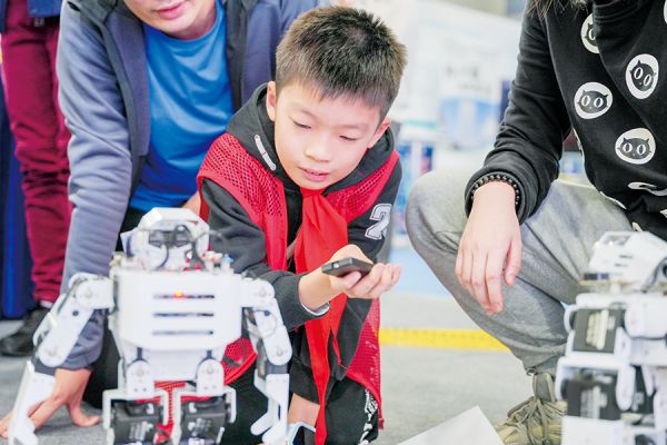 “小豆,太空行走!”随着一名小朋友下达指令,一个约30厘米高的智能机器人在小朋友们期待的目光中,干净利落地走出“太空步”,这个多才多艺的机器人瞬间吸引了众多小朋友的目光。和“小豆”一起亮相的,还有一辆无人配送小车“小丁”,只需要通过手柄进行简单操作,就可以轻松地指挥“小丁”把货物配送到家。