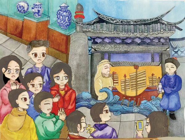 “好有趣的画,看起来很有立体感!”“看!上面还画了科研人员在海底考古沉船瓷器喔!”“中欧班列也画出来了呀!”在越秀区少年宫壹号艺术坊内,一幅幅海上丝绸之路主题的青少年通草画作品让东山口的游客们发出阵阵惊叹声。