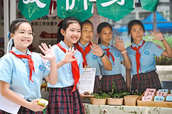 少先队员们通过创意摊位展示德智体美劳全面发展 石建华/摄