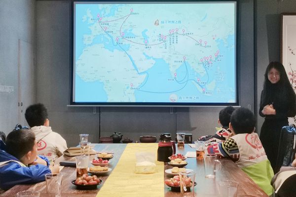 小记者们正在聆听茶叶贸易与丝绸之路的联结知识