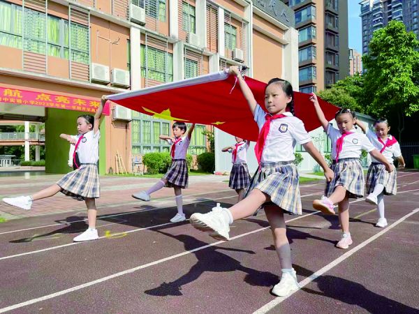 9月秋季新学期伊始,白云区华师附中实验小学早早准备好“开学第一课”,举行庄严的出旗仪式,由学生组成的国旗护卫队英姿飒爽、目光坚毅,迈着铿锵有力的坚定步伐,升起新学期第一面国旗。