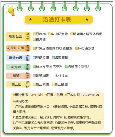 队员们,看完前文的介绍,大家是否迫不及待地想前往广州云道游览,实现云中漫步,领略沿途的山水人文,赏花赏景?不用着急,编辑总结了一份广州云道的游览攻略,大家不妨仔细研读,待节假日时,整理心情,背上行囊,与家人和朋友一起出发吧!