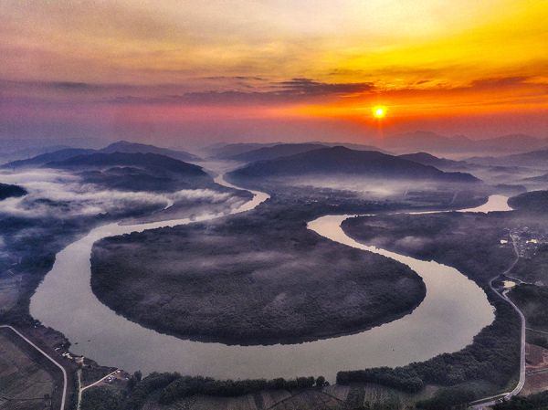 师爷山是广州市东部第一缕阳光观赏点,山顶有师爷庙,山下是增城区的增江,这里经常云雾缭绕,日出时间,蔚为壮观,秀美的增江第一湾尽在眼前 范江风/摄