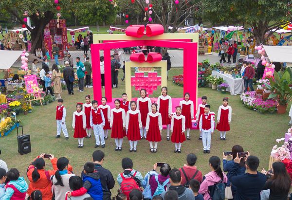 2月5日,在广州儿童花市中小学生的文艺表演(航拍) 韩贵凯/摄