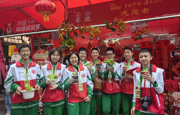 花都区迎春花市内,一群少先队员们忙得不亦乐乎。“送您一个‘福’,祝您福星高照、福气冲天、福禄双全!”略显稚嫩的笔触写出的“福”字别有韵味,引得路人频频注目。另一边,红领巾宣讲员正声情并茂地向大家介绍着广府年俗:“广州人素有养花、赏花习俗,广州‘春节(行花街)’也已经被列入国家级非物质文化遗产代表性项目名录。过年行花街是我们广州独特的年俗文化,也代表着我们这座城市的烟火气,有了年花年桔,年味才够‘正’。”