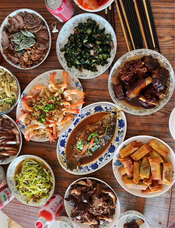 首先出场的便是年夜饭,数双不数单,一般为10或12个菜,寓意好事成双、十全十美;鸡鱼要坐镇,鱼头朝东南,荤素巧搭配,长辈先动筷,觥筹交错间中华传统文化尽收眼帘,有余有财,新的一年一定吉祥如意。