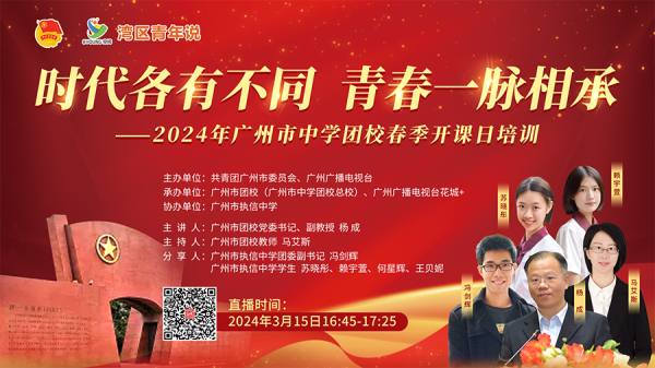 广州青年报讯(记者 孙雪晴 见习记者 高乐乐)由共青团广州市委员会、广州广播电视台主办,广州市团校承办的2024年广州市中学团校春季开课日培训将于3月15日举办,将以青年视角深入探讨一百多年来广州青年运动的历程,全市中学生团员可通过广州广播电视台“花城+”平台参与本次线上学习。