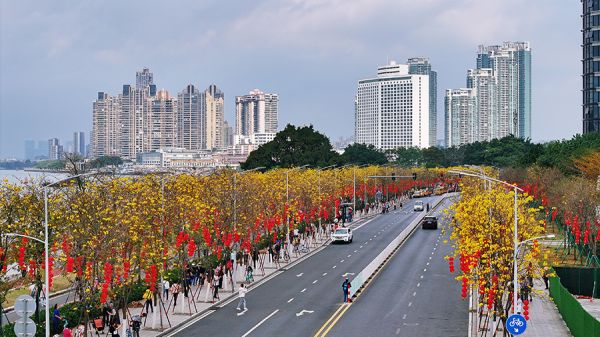 春花灿烂耀珠江,形成一条长长的花路,蔚为壮观 林乐峰/摄