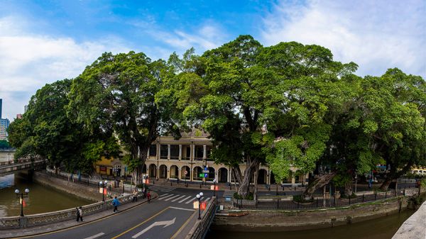 广州沙面南北街的古榕树郁郁葱葱,仿佛为沙面岛筑起一道绿屏障。袁彬/摄
