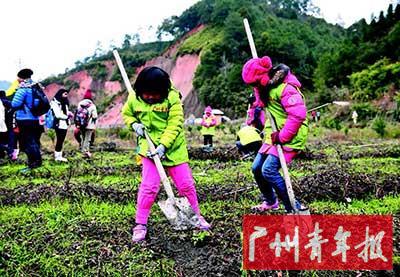 学生记者们在当地村民的带领下,挖掘紫玉淮山,捡拾鸡蛋。在挖掘的过程中,校园记者们不断地进行发问,想了解更多关于紫玉淮山的知识。“从前都没有参加过农家的实践活动,感到很新奇,在这次挖淮山的环节中挖到了很大一截淮山,所以很开心,采访技巧也得到了提高。”校园记者赵研雯兴奋地说道。