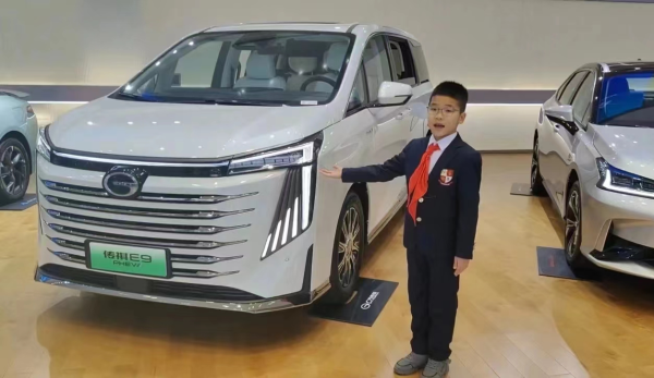 ● 广州大学附属小学的少先队员代表到新能源车企进行志愿服务,为游客讲解新能源汽车领域的发展新动态。