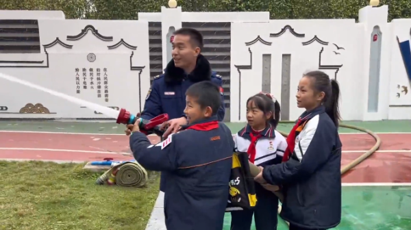 ●海珠区赤岗东小学的少先队员们走进辖区内赤岗消防救援站,为消防战士送上新年祝福,同时,在消防战士的指导下,学习使用各类消防设施。