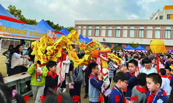 越秀区旧部前小学的同学们以舞龙舞狮列阵,气势磅礴地展开“热 辣滚烫”新学期。