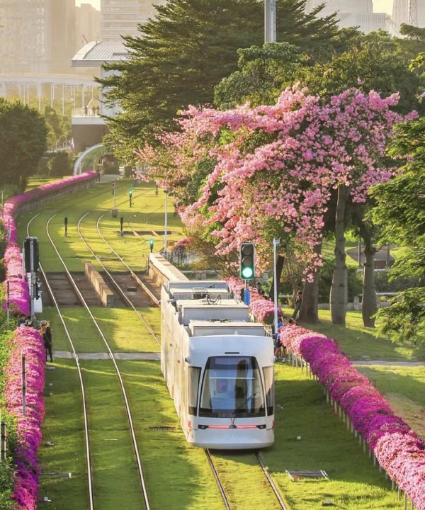 漫画世界里的梦幻花海是怎样的?由广州海珠有轨电车带领我们出发去看看!它在“广州最美7公里”的路线上穿梭,粉色异木棉时而飘下花瓣,两边是五彩的花海,与珠江边上宏伟的城市建筑构成了美不胜收的新春花城图,谁能不感叹广州的美呢?