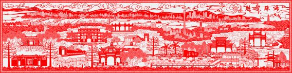 韩艳老师以白云山、珠江为背景,历时两年,创作了一幅长320厘米、高80厘米的剪纸作品,展现了广州塔、赤岗塔、大元帅府等海珠风景名胜。此作在文博会上获得“中国工艺美术文化创意奖金奖”。