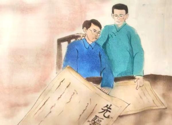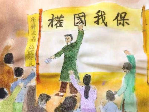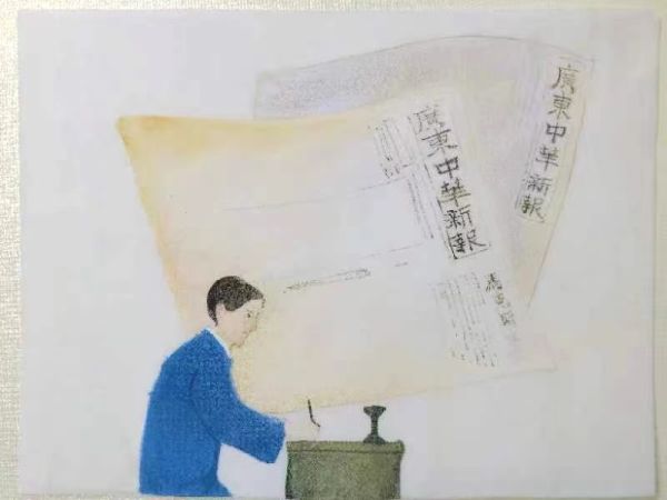 越秀区少年宫通草画班4至6年级的学生依据共青团广州市委员会、广州青年运动史研究委员会共同为青少年编写、由南方日报出版社出版的团史红书《漫话团一大》,以临摹的方式,选取了书中部分感人画面绘制在通草片上,让这部团史红书以通草画的形式灵活呈现。
