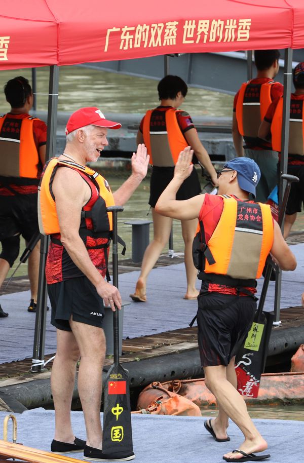 除了当天激烈比拼,本届赛事的推广活动更丰富。赛前,组委会策划了龙舟文化走进校园、走进猎德村、走进海珠国家湿地公园等活动,给市民群众带来一场场粤韵悠长的端午民俗体验,促进“文商旅体”融合发展。赛事期间,邀请参赛队伍代表观赏《龙·舟》舞剧,充分展示团结拼搏的“龙舟精神”。比赛现场还布置了龙舟文化百米长卷,对龙舟历史和文化内涵进行生动展示,具体呈现龙舟文化的独特魅力。