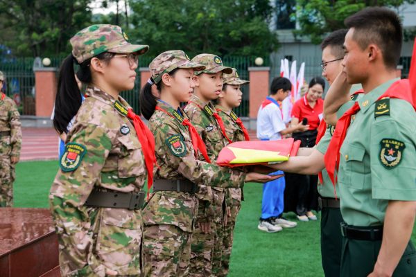 在升旗仪式上,少先队员代表为解放军叔叔们佩戴了红领巾,解放军叔叔们也将从西藏带来的哈达送给他们,并回敬军礼。