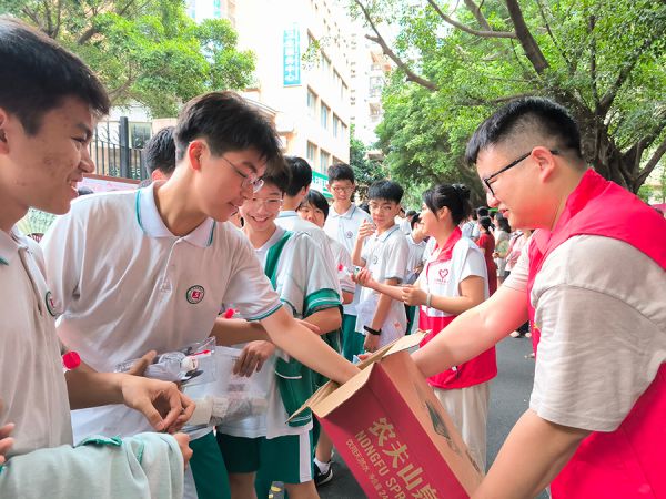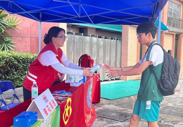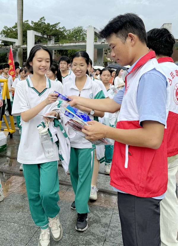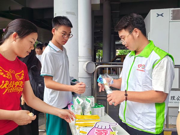 志愿者为考生送上饮用水