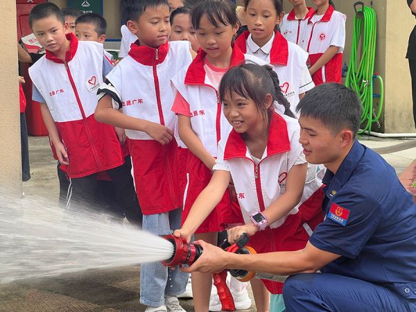 “消防哥哥”手把手带领中小学生志愿者体验消防器材