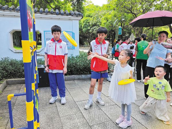 志愿迎全运,中小学生志愿者设置的套圈互动小游戏传递体育乐趣