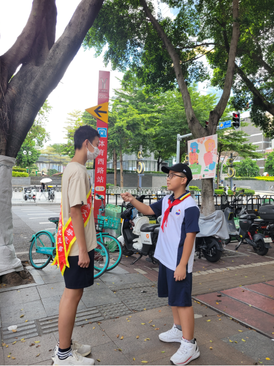 我帮助其中一位志愿者派发宣传单,并与他交谈。他说 :“公交站场是面向全国游客的第一扇窗。举行全运会时,各公交站场的人流量一定会非常大。我们会把平时的每一次志愿服务都当作演练,为这场城市盛会做好准备。”