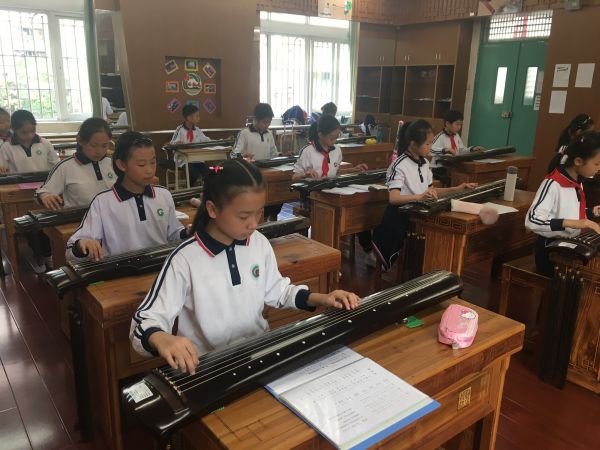 学校已成功申报广州市非物质文化遗产传承基地,成立“古韵飘香”古琴小社团,邀请专业老师授课,已传授学员100多人,培养了多名岭南古琴的优秀小传承人。