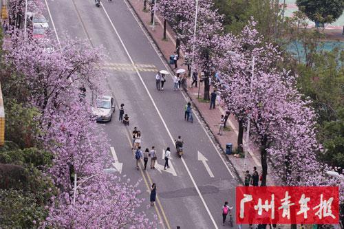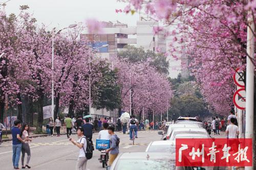 美景在街,市民们纷纷走出家门,在街头、在巷尾、在公园、在校园,欣赏、感受羊城的春意。