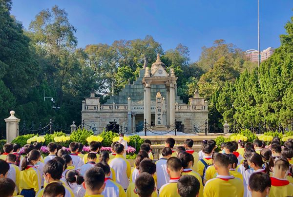 “红军不怕远征难,万水千山只等闲”,思政教师不仅在校内引导学生学习红色诗词及其背后的故事,还带领大家走出校门延伸学习。离学校不远的黄花岗公园成为了学生们理解革命前辈精神的好去处,在黄花岗公园七十二烈士墓前,我给全体五年级学生带来一堂《从辛亥革命到建党伟业》大思政课,将中国共产党百年奋斗史、“黄花”傲霜斗寒的节操深植学生心中。