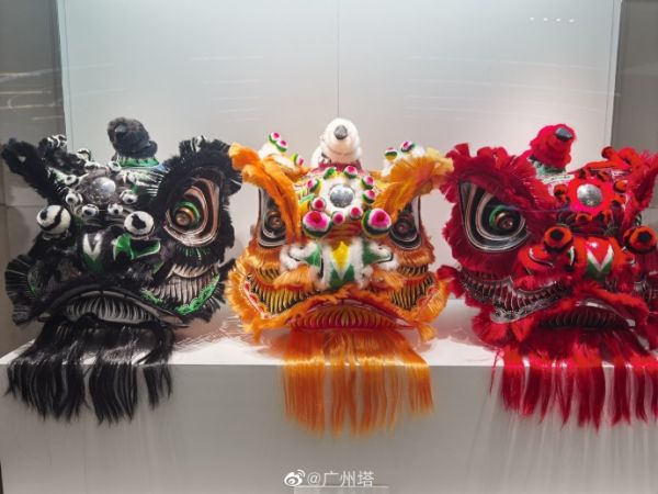 传统狮头的油彩画法通常以粤剧《三国演义》中的英雄人物脸谱为参考,按照角色分为文武两种狮形,文狮以刘备狮为代表,武师则以张飞狮、关羽狮为代表,不同的狮头造型所代表的人物和意义都不同。刘备狮通常是黄色,代表忠孝;关羽狮通常是红色,代表仁义;张飞狮通常是黑色,代表勇猛。而狮头的扎作步骤分为扎、扑、画、装四道工序,在装饰设计上则采用了夸张的表现手法,扎作与装饰设计相结合,才创造出一个个威武雄壮、活泼可爱和形神兼备的艺术形象。