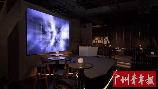 沿着走廊进入店内,落地窗隐约透进外界的光,喜欢窗的人可以坐在这里,无论是白天还是夜晚,白天可以享受阳光,以及窗外的绿树和河流,晚上则可以看灯影与星光绰绰,玻璃的隔阂让人有一种与外界若即若离的美感。再走进去,则是两层的座椅,扇形分布,沿着中央的舞台,黑色的皮质沙发带来温润的触感,坐下来好像在最亲近的人的怀抱里,温暖妥帖,舍不得离开。再往里走,隔舞台稍微远一点,则是聚会玩乐之地,有酒有聊天,有桌球台,有远方的音乐,如果你想离人群远一点,和朋友相处,就可以选择这里。