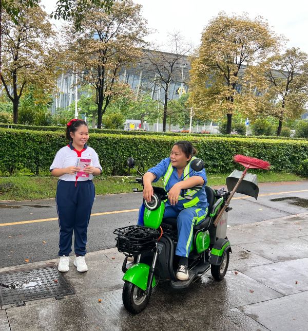我要用敏锐的眼睛,发现身边的美,传播具有正能量的故事。让我印象深刻的是,在“广州市绿道调研活动”中,我采访了清扫绿道的环卫工人。当我问她这份工作每天起早贪黑、风吹雨打,是否感觉到辛苦时,她说:“环卫工作就是这样,总要有人来做的,辛苦一点没什么,只要看到环境美了,我心里就高兴了。”那一刻,我深受触动,更加坚定地要在报道中加入”城市美容师”的故事。