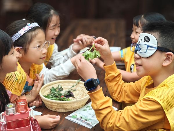 在寻找十香花墙的过程中,普特儿童分组行动,手拉手穿梭于园林。一起感受岁月在花墙上留下的痕迹;在“闻香识植物”环节,普特儿童蒙上眼互相引导着靠近不同的植物,鼓励彼此去嗅闻和触摸,感受万千世界的一草一木。