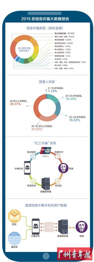 “猜猜我是谁”冒充熟人领导诈骗、利用微信或QQ冒充熟人诈骗……近年来,电信诈骗案件持续多发高发,不法分子不断翻新犯罪手法,紧跟社会热点,甚至针对不同群体量身定做、步步设套。据“天下无贼”反信息诈骗联盟(由腾讯联合广东省公安厅、深圳市公安局反信息诈骗咨询专线等方面共同发起成立)发布的《2015反信息诈骗大数据报告》(以下简称《报告》)显示,全国每3 人中就有1人接收过诈骗信息。其中,仅短信诈骗一项,就有至少2.8亿用户接收过。是谁泄露了我们的信息?什么人最易上当受骗?