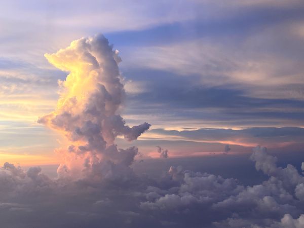 天空中那朵巨大的云宛如一只站立着的土拨鼠,憨态可掬。瞧!它正好奇地张望着这个世界。这时,一缕金色的光芒洒在它那挺拔的身上。霎时,它变成了一个身穿金色铠甲的空中战士,守卫着广袤的天空。
