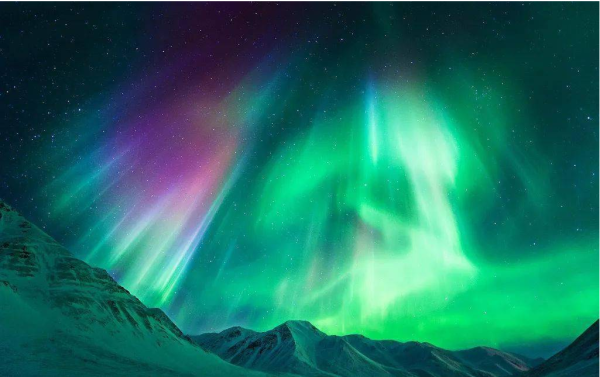 极光的亮度多变,从银河星云般的微弱光芒到满月时的明亮,亮度差异显著。极强光出现时,甚至能够清晰地照亮地面物体的轮廓。极光的色彩变化也令人叹为观止。大自然如同一位技艺高超的画家,将深浅浓淡、隐显明暗一搭配、一组合,让极光化为万花筒。根据不完全的统计,能够被清楚分辨的极光色调已达160余种。