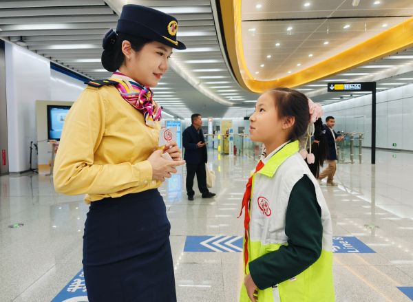 编者按:12月28日,伴随着广州市首条地铁环线——广州地铁11号线开通,“广青融媒”红领巾小记者踏上了探索之旅。他们穿梭于琶洲站、芳村站、中医药大学站等别具特色的11号线站点,通过亲身体会城市公共交通如何“顺畅出行”、采访地铁工作人员和乘客,探寻隐藏在现代交通脉搏中的传统非遗元素。