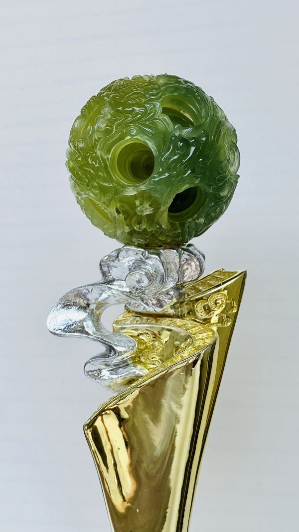 余其泽老师参与制作的通雕玉球作品《龙腾丝路》