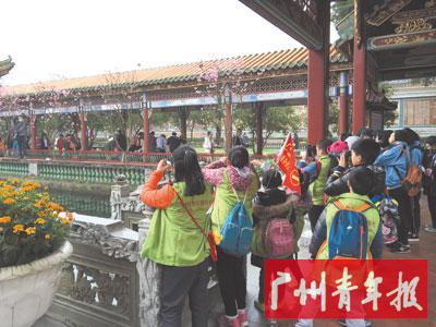 自然,春回大地,宝墨园里观赏樱花的游客中少不了我们广州青年报小记者们的身影。