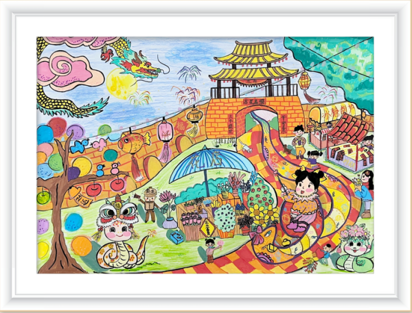 作品名:《蛇年好运长似龙,新春花市闹欢腾》