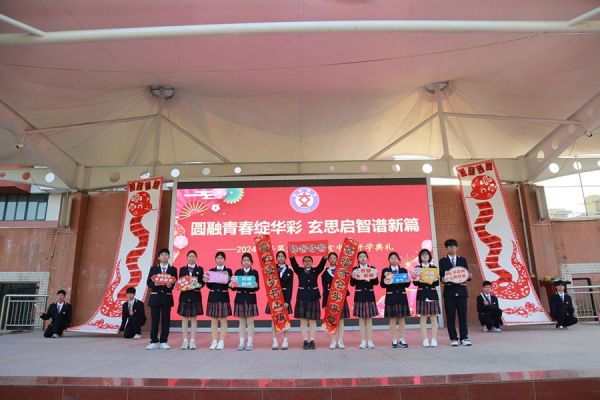 在花都区圆玄中学的开学典礼上,“灵蛇逐梦 幸福满仓”游戏将气氛推向高潮。各级长和学生代表手持写着“自信”“勇气”等话语的能量卡,向师生说出新年心愿,满是对新学期的憧憬。随后,他们把能量卡贴在学校剪纸社团精心制作的灵蛇剪纸作品上。刹那间,原本静态的剪纸灵动起来,两条栩栩如生的灵蛇出现,传统剪纸文化与开学仪式完美融合,让同学们真切感受到传统文化的独特魅力。