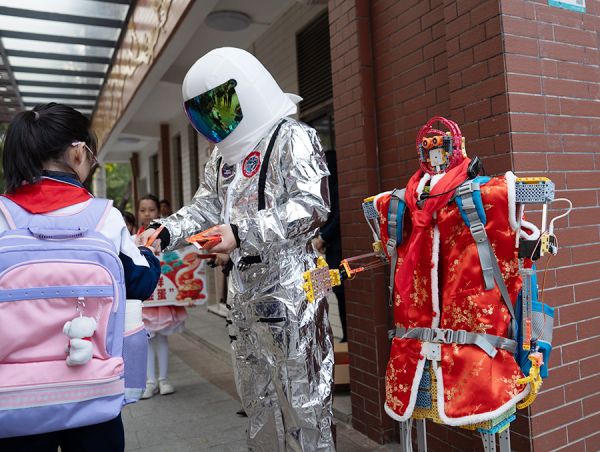 在海珠区万松园小学,机器人与醒狮一同欢迎孩子们返校。校园内,机器人们“打年兽”“送年货”“吃汤圆”“写福字”……30多个科技体验项目为万松园小学的学生们带来一场沉浸式科技课堂。