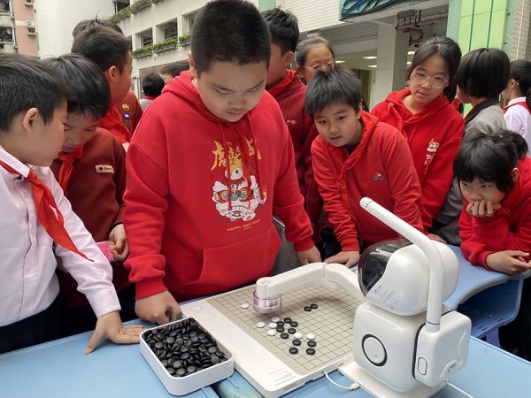 同学们与人工智能机器人切磋棋艺(通讯员供图)