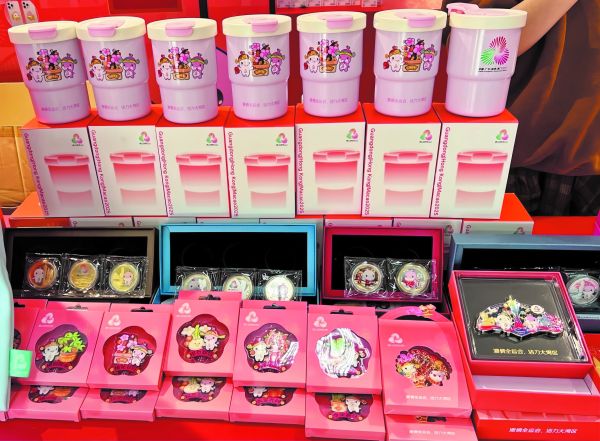 来到白云机场十五运会特许商品展柜前,萌趣盎然的吉祥物“喜洋洋”“乐融融”很是引人关注。非遗工艺铸就的纪念章流转着大湾区千年文脉,采用广绣技艺的丝巾在光影中演绎岭南水乡的灵动,更有智能温感变色水杯等科技文创,让传统年味碰撞未来想象。特别设计的“湾区竞速”系列徽章套装,以港珠澳大桥、广州塔等湾区地标串联运动元素,成为旅客争相收藏的文化信物。
