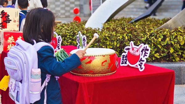 新学期要“玩”起来!广州市增城区新泉小学的开学第一课融入了创意盎然的互动游戏。第一课上,学生轻轻触摸那些承载着祝福的物品,仿佛手中握住了开启新学期的幸运钥匙。学生亲手写上自己的心愿,笔下流淌的是对未来的无限憧憬与坚定信念。学生以坚定的步伐跨越象征着过往与未来的门槛,满怀着对新学期的殷切期待。