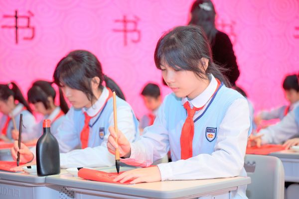 究竟是哪座学府弥漫着墨香?原来是广州市白云区景泰小学,这里正“书写”着“书法第一课”。现场,师生们共写“福”字,在笔墨挥洒间传递美好的祝愿。为更好地展现传统书法之妙,书法协会的赵节初老师受邀到校,指导同学们带来精彩的书法展示。只见他们挥毫泼墨,在笔锋游走间尽显扎实的书法功底与书法艺术魅力。景泰小学的开学第一课激励着学子在新学期紧握手中笔,饱蘸希望与勇气的墨汁,书写属于自己的辉煌篇章。