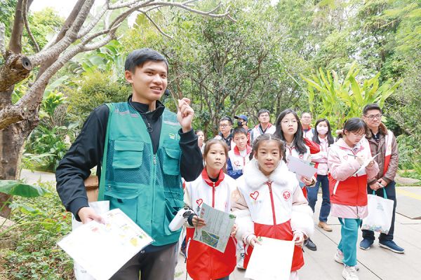 在海珠湿地“雁来栖”自然导师的带领下,志愿者们开展全运知识互动、巡河巡绿、树木观察等志愿服务,以徒步的方式了解湿地的生态环境,树木的生长状态,完成“古树”及“河涌”巡护笔记。志愿者们还与游客积极互动,宣传“绿色全运”知识,邀请市民群众建言献策。